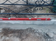 Мы решили избежать демонтажа ограждения и установили бордюрные блоки по периметру участка. Работы проводились при помощи уровня, что позволило избежать ненужных подъёмов и впадин, способных испортить внешний вид покрытия.